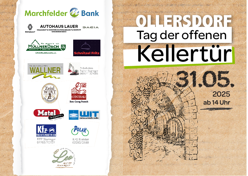 Besuchen Sie uns beim Tag der offenen Kellertür in Ollersdorf am 31. Mai 2025 ab 14 Uhr.